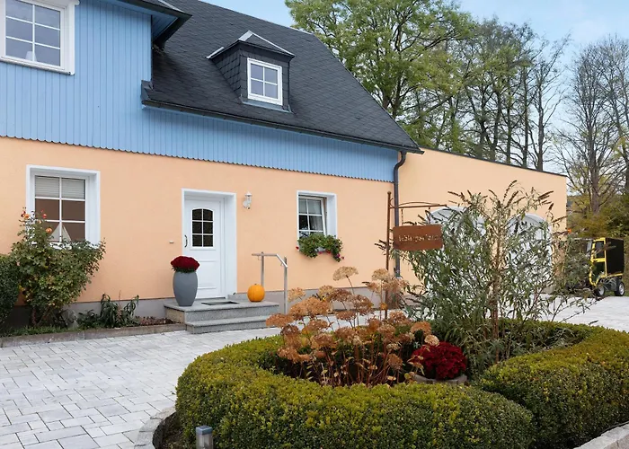 Teichmuehle - Vogtland Chalet Bad Brambach van 65 m² ligt in Bad Brambach, op afstand van 3 km van het Kasteel Vildštejn, en biedt spafaciliteiten zoals een stoomcabine en een sauna. Het 1-slaapkamer appartement heeft een terras met de berg.